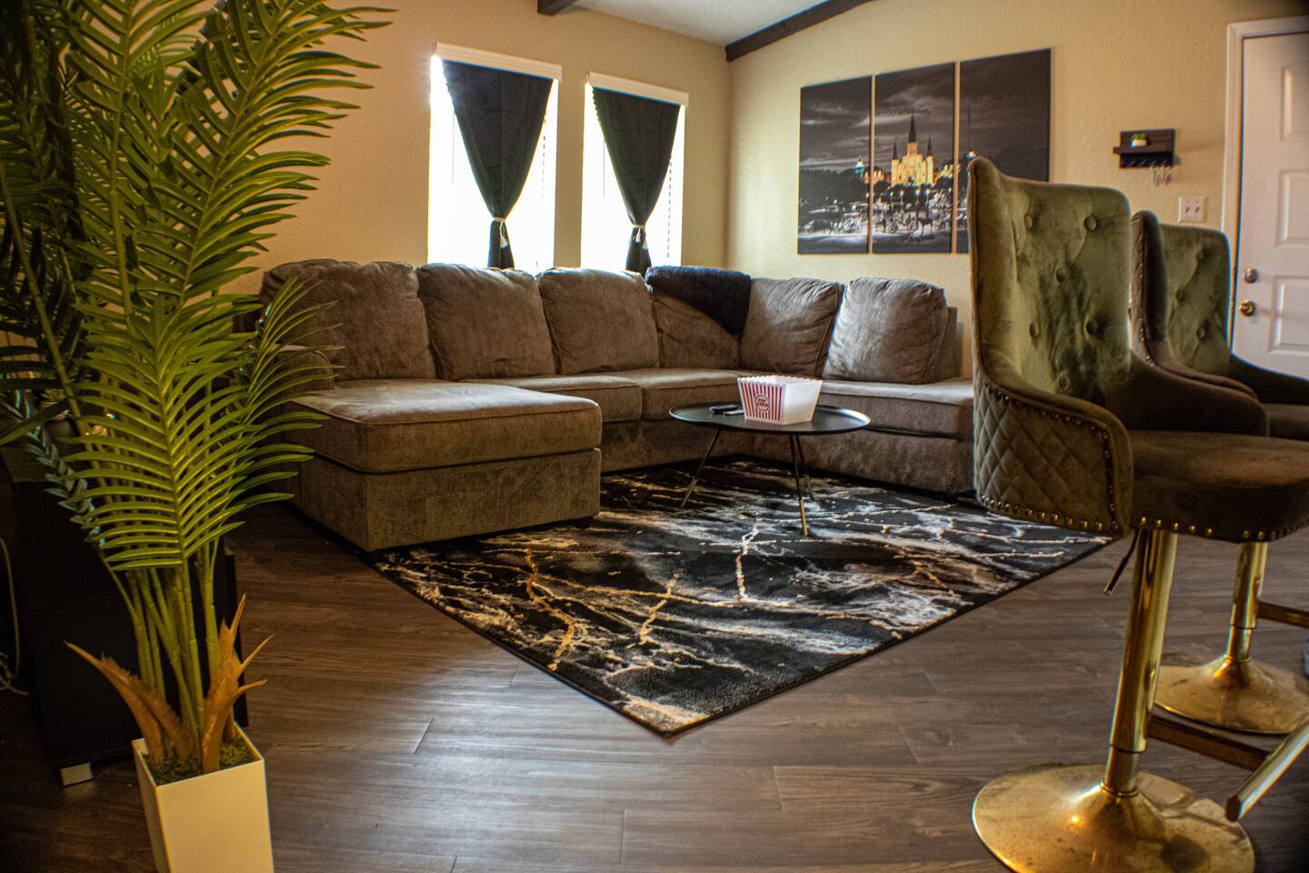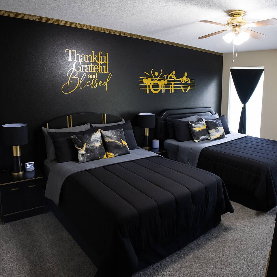 ⭑Bed Rooms ✔ Digital clocks – Always know the time at a glance. ✔ Dressers – Store your essentials neatly. ✔ Laundry baskets and Trash cans – For your convenience. ✔ Mounted Smart TV- Watch a movie before snuggling for bed. ✔ Walk-In Closet- plenty of space to hang your clothes and store luggage ✔ Entertainment Center- space for a gaming system or place to store other small items ✔ Ceiling Fan- help cool down the room from Louisiana's Heat ⭑Living Room:⭑ ✔ Mounted Roku TV – Gather around for movie night or catch up on shows. ✔ Comfortable Sectional Couch – Plush furniture for your relaxation. ✔ High ceilings with crown molding – Adds a touch of elegance and space. ✔ Espresso Wood-Style Plank Flooring – Stylish and easy to clean. ⭑Kitchen and Dining Area:⭑ ✔ Fully Equipped Gourmet Kitchen – Everything you need to prepare delicious meals. ✔ Modern Cabinetry with Brushed Nickel Hardware – Sleek and functional. ✔ Dining Table – Enjoy meals together in a cozy setting. ✔ Coffee maker – Start your mornings right with a fresh brew. ✔ Wine glasses – Perfect for a relaxing evening. ✔ Toaster, Baking sheet, Blender – Additional tools for your culinary adventures. ✔ Microwave- Warm up a quick meal or pop some popcorn for a movie night ⭑Bathrooms:⭑ ✔ Full Size Newly Renovated Bathroom – Clean and modern for your comfort. ✔ Bathtub – Relax and unwind after a long day. ✔ Hair dryer, Cleaning products, Hot water ⭑Entertainment and Connectivity:⭑ ✔ Roku TV– Available in every room for your entertainment. ✔ Exercise equipment – Stay active even while traveling. ✔ Books and reading material – Relax with a good book. ✔ Board games – Perfect for family and group activities. ✔ Wifi – Fast and free internet access. ⭑Heating and Cooling:⭑ ✔ Air conditioning, Ceiling fan, Portable fans – Stay cool and comfortable. ✔ Central heating – Keep warm during cooler months. ⭑Additional Amenities:⭑ ✔ Free Washer and Dryer – In unit for your convenience. ✔ Essentials (Towels, bed sheets, soap, and toilet paper) – Provided for a hassle-free stay. ✔ Hangers, Bed linens, Extra pillows and blankets – All the comforts of home. ✔ Iron – Keep your clothes looking their best..